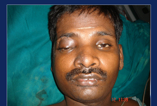 Chronic indolent or granulamatous fungal disease affects apparently healthy individuals. Usually the disease affects the orbit and brain. Though the starting point may be in the sinus, once the fungus gains entry into the orbital fat or brain it spreads like wild fire. The body’s own defence mechanism puts up a fight and granulomas form. It is usually very thick scar tissue. Cutting instruments have to be used even to take a biopsy.
