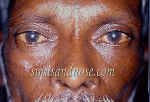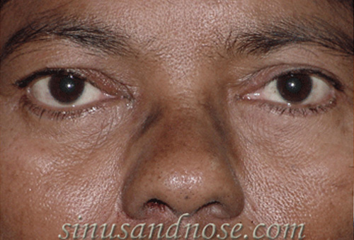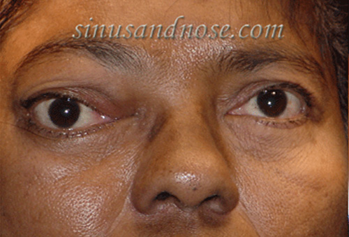 An expanded frontal & ethmoid mucocele may produce proptosis (bulging of the eyes) and disfigurement of the face. Mucoceles of the posterior ethmoid and sphenoid sinuses can produce blindness due to pressure effect on the optic nerves. Endoscopic marsupialisation is the treatment of choice to cure this condition External Surgery has no role in this condition and external operations are associated with high recurrence rate. External operations should be avoided for mucoceles.